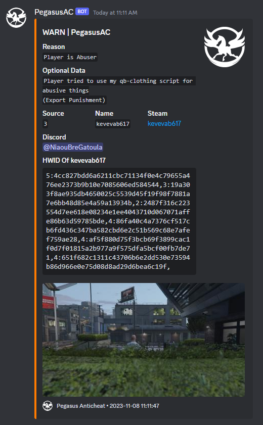 exports["PegasusAC"]:PunishMePlease(source, action, reason, details, screenshot)